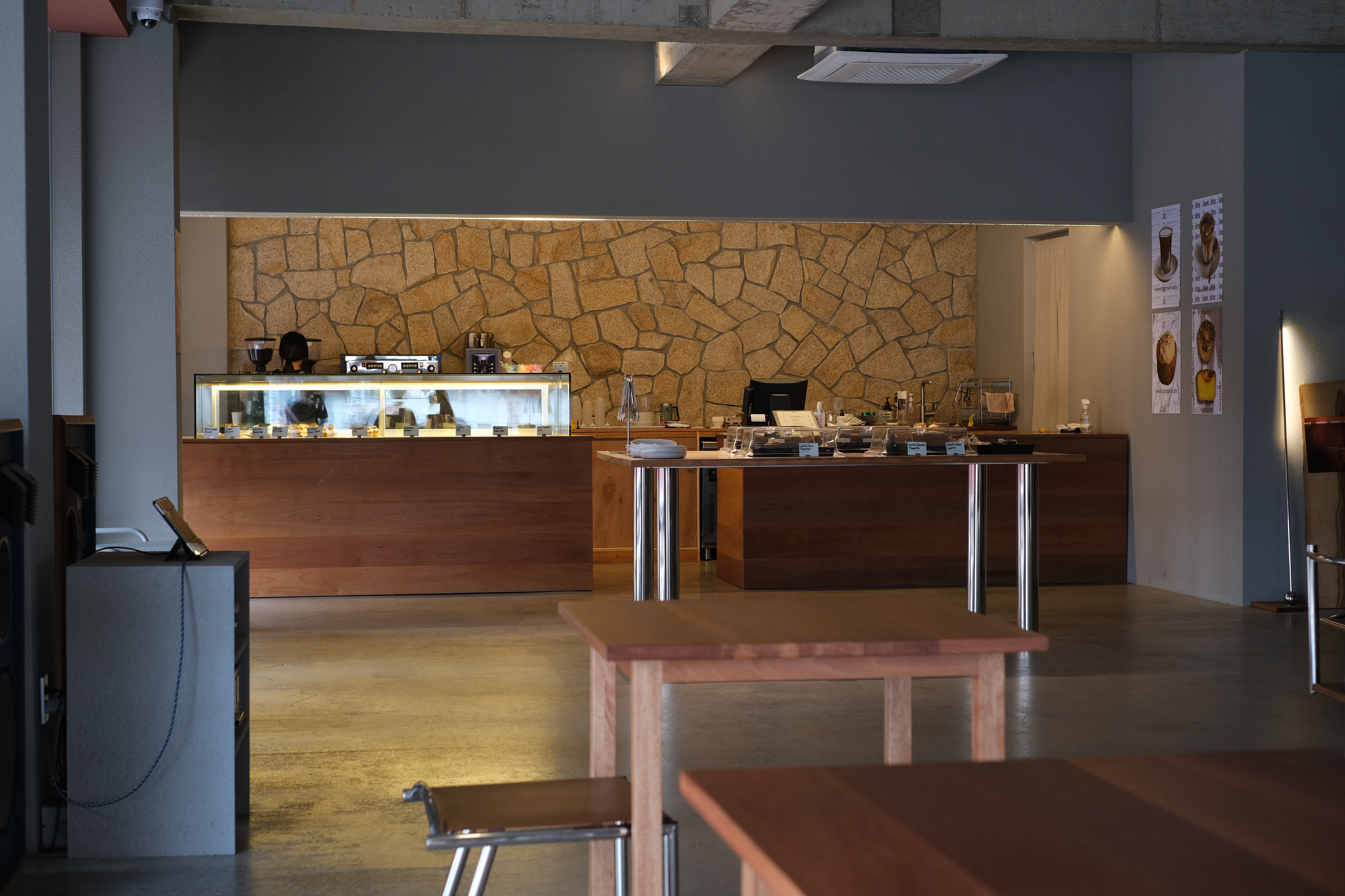 모던하고 널찍한 공간에 조도가 낮은 약간 어둑한 분위기가 차분히 커피에 더 집중할 수 있게 하는 효과가 있는 거 같다.